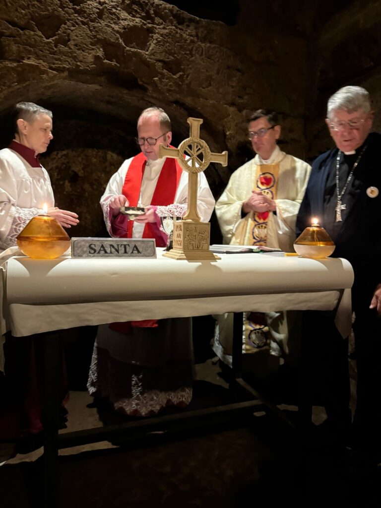 In the afternoon we processed down the Via della Concillazione and through the Holy Door into the Basilica of St Peter.  Prayers were said during the procession and on entering through the Holy Door.  This was followed by Evensong in the crypt near the tombs of St Peter and Benedict XVI.  This was a special privilege granted because a specific rite was being celebrated.  Prayers were also offered at the tomb of Pope Benedict whose Anglicanorum Coetibus enabled the Ordinariate to happen. Once again, the day concluded with a group meal and drinks.