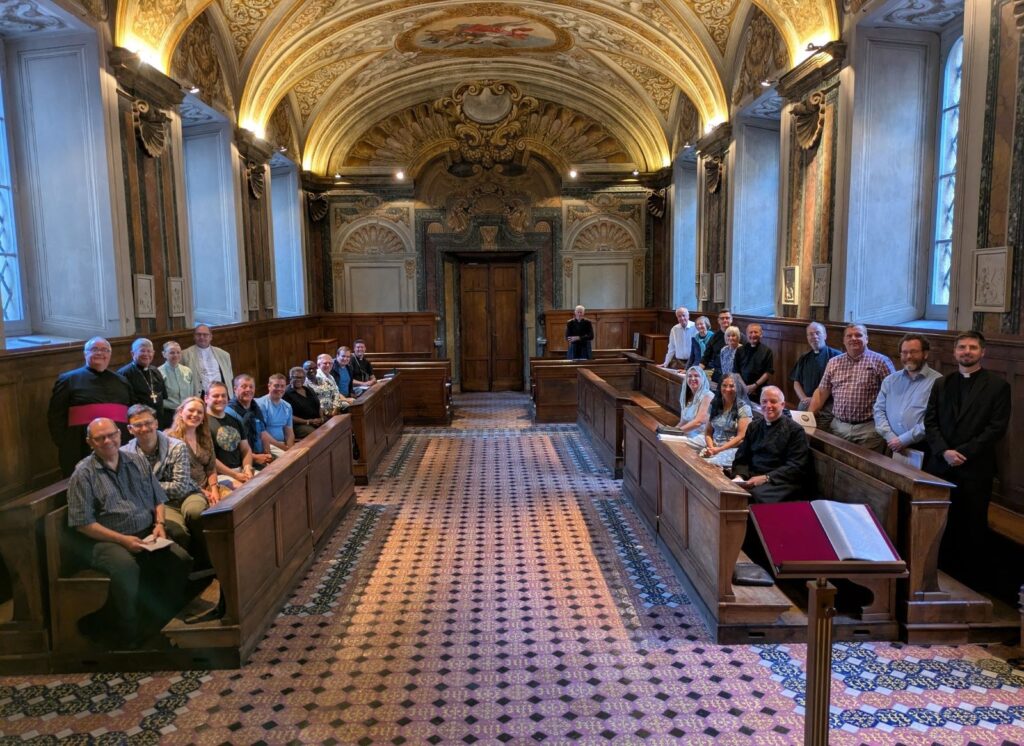 On Wednesday afternoon Bishop David met the footsore but happy pilgrims at the Venerable English College.  After some well-deserved refreshment we entered the VEC for Evensong.  We were given a brief history of the VEC.  It was wonderful to celebrate Divine Worship evensong in a place that has a connection to the English Catholic church that pre-dates the reformation by centuries.  After this celebration and time for the walking pilgrims to find their accommodation, everyone met up for an evening meal. A very important aspect of all Ordinariate events is that fellowship walks very much hand in hand with the spiritual.  Clergy and laity all around the table sharing thoughts and anecdotes.